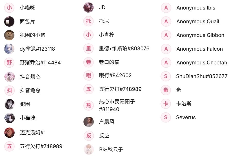 全新称号系统,感谢以下热心市民提供灵感。