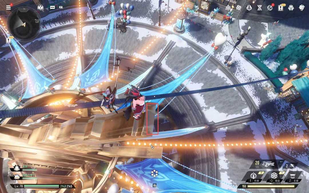 广场中央类似炮台建筑的炮口,图中红框处会有一个潘神魔灵印记,对话即可