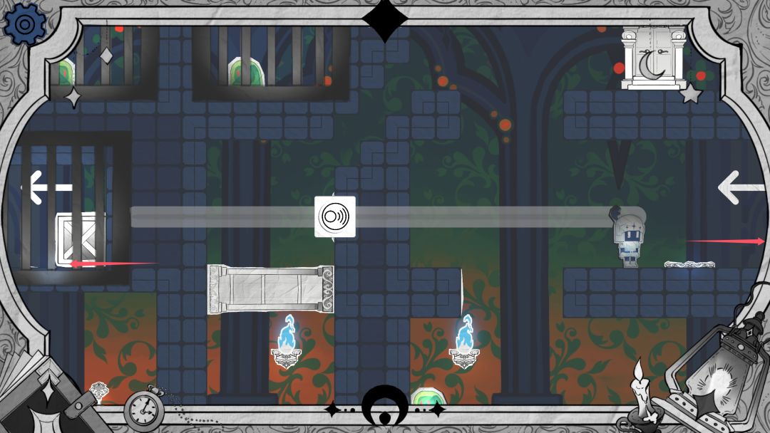 步骤1 先利用音量滑块跳上平台,接着用亮度滑块让阴影墙消失