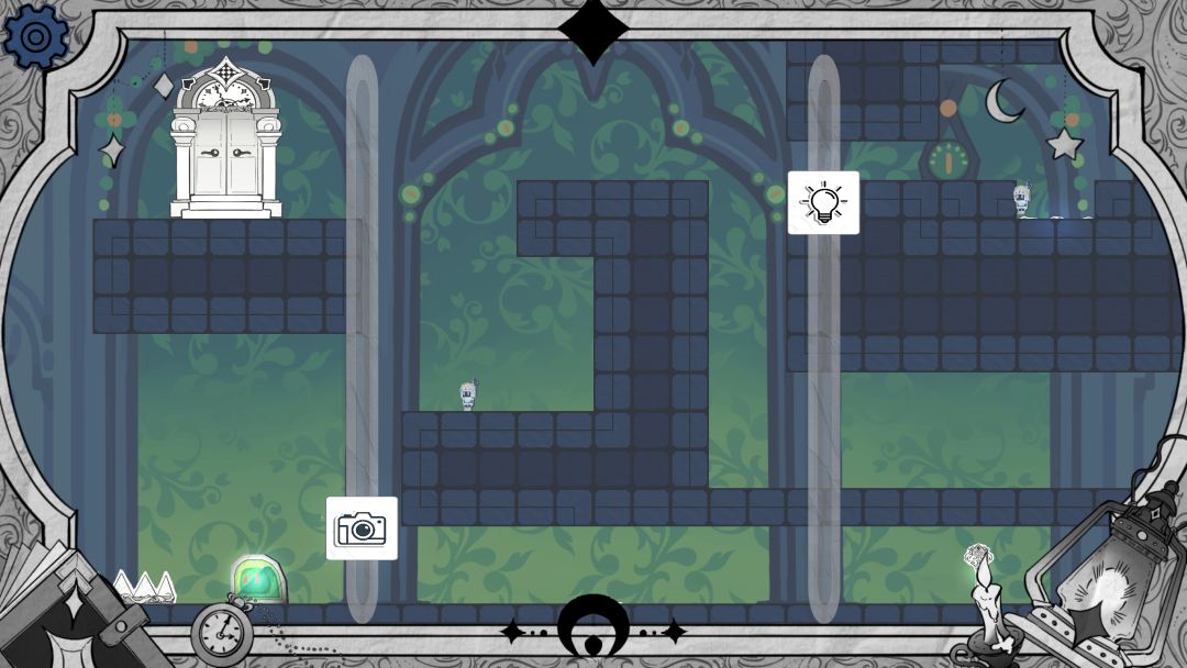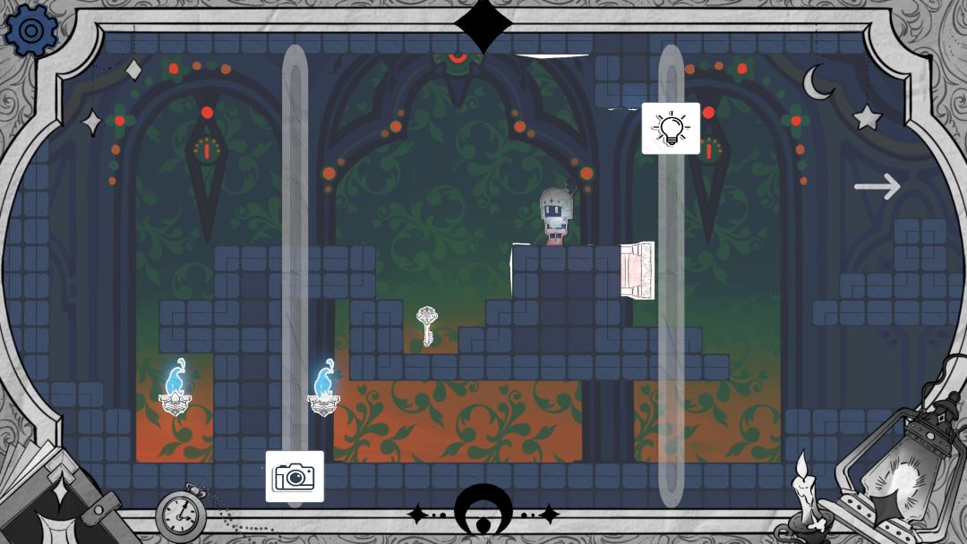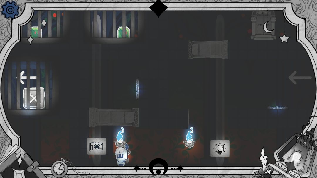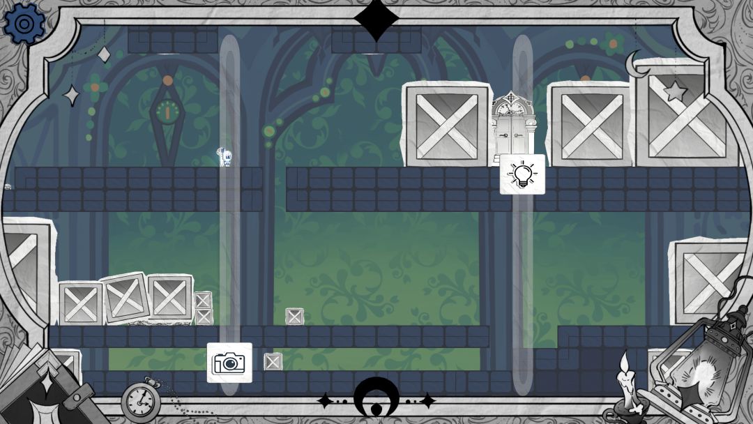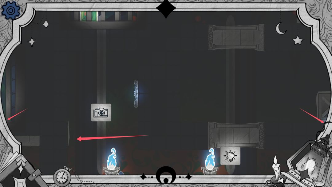 步骤1 开局可以选择从上面用亮度滑块抵住按钮通过,也可以选择从下面阴影墙通过