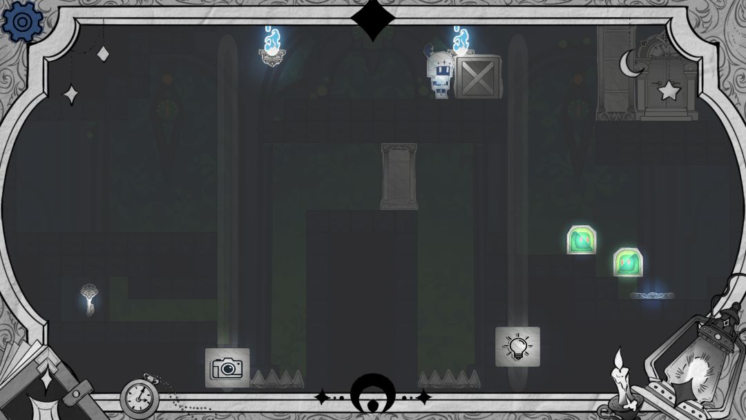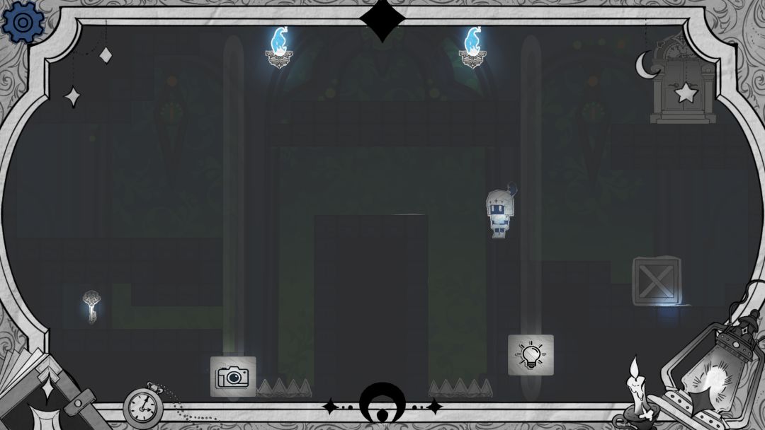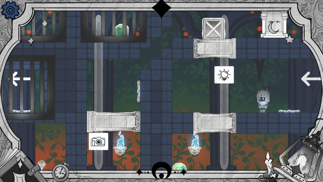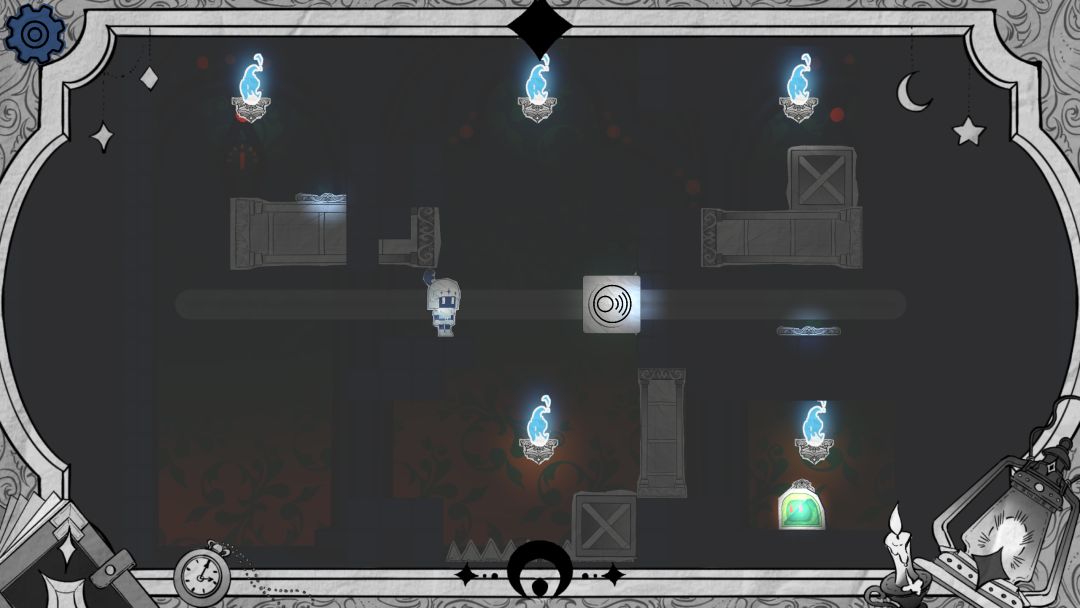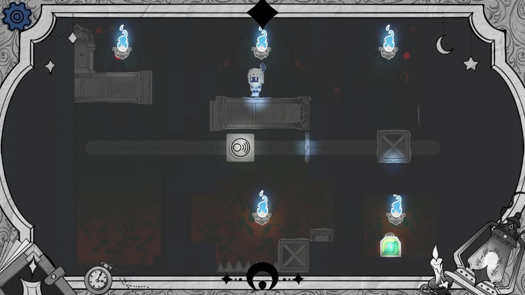步骤1 开局可以选择从上面用亮度滑块抵住按钮通过,也可以选择从下面阴影墙通过