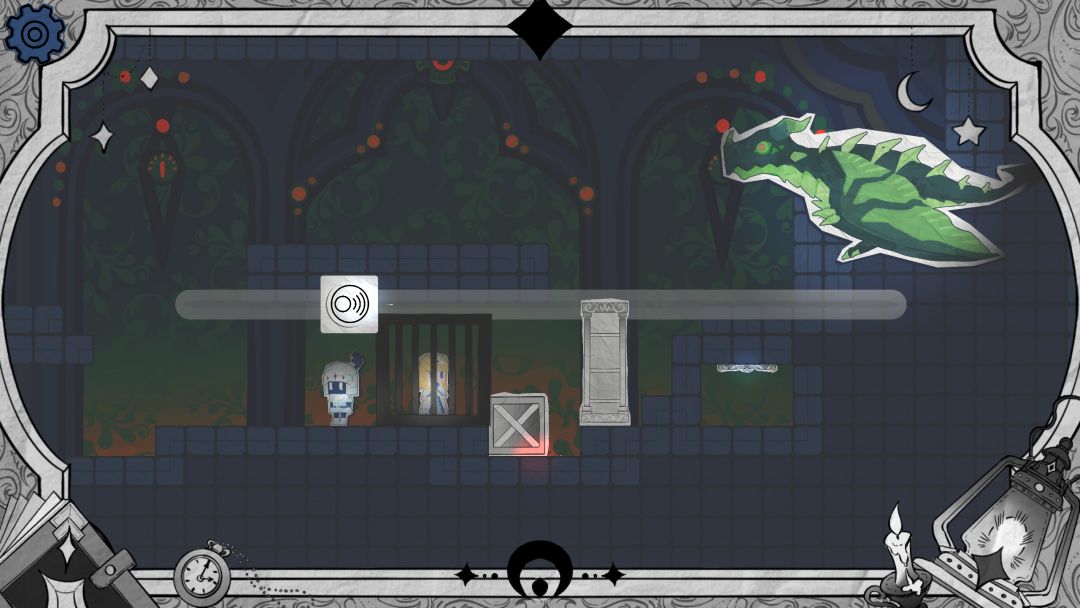 步骤3 此时移开滑块,就可以踩到门上的按钮了,箱子会落下压住按钮,此时大门和下面的门就打开了