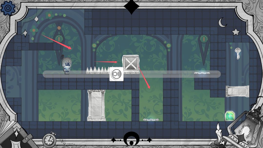 步骤2 缩小拿到钥匙后,再将上面的箱子往左推走,此时另一扇门也打开