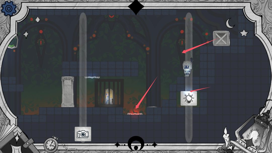 步骤5 放大相机到一定程度,箱子会从监狱内穿越到对称侧按钮上,此时角色头顶的门就打开了