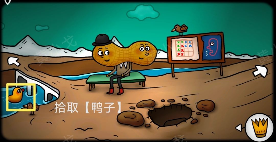 39.点击石台,根据上面的凹槽形状,依次放入【三角块】和【皇冠】