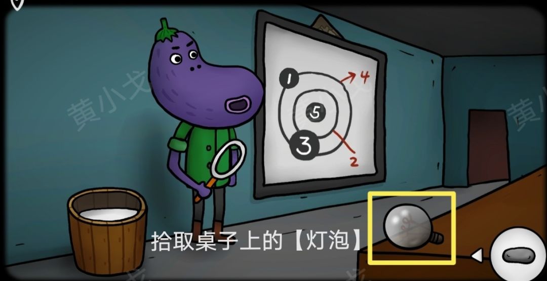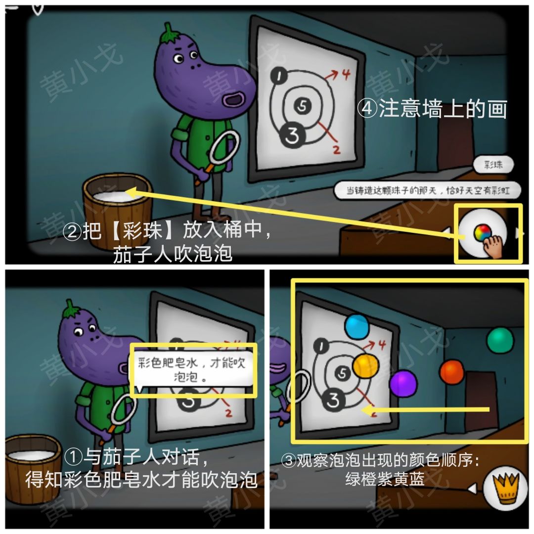 25.与茄子人对话,得知彩色肥皂水才能吹泡泡;把【彩珠】放入桶中,茄子人吹泡泡,获得线索