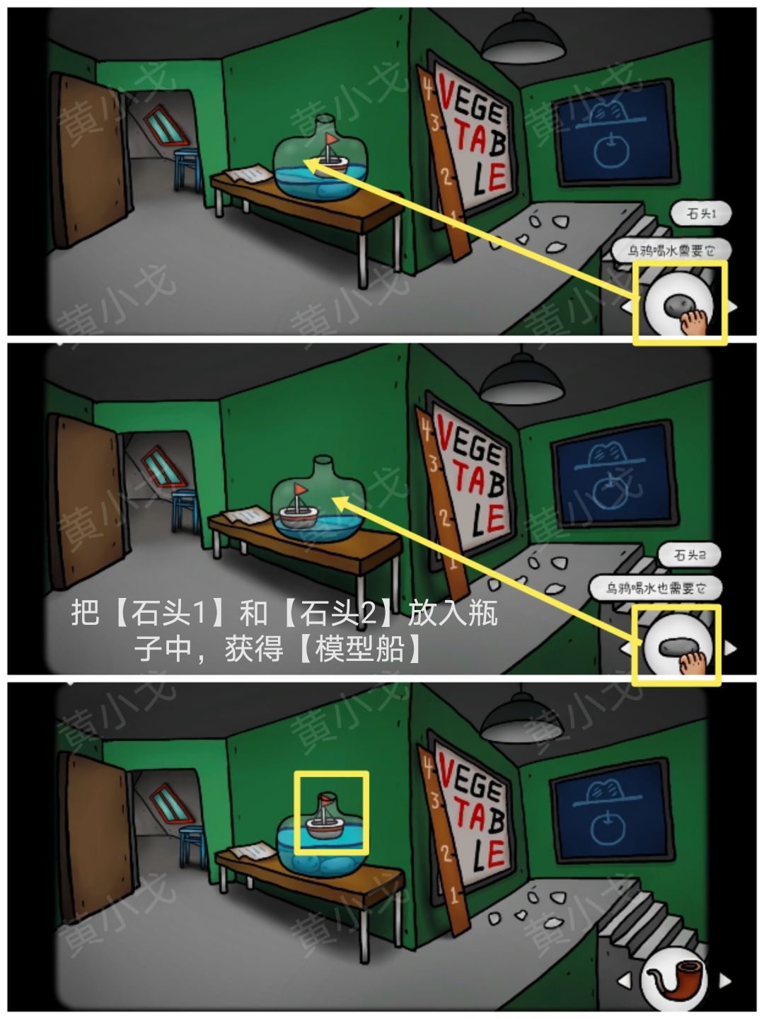 12.把【石头1】和【石头2】放入瓶子中,获得【模型船】