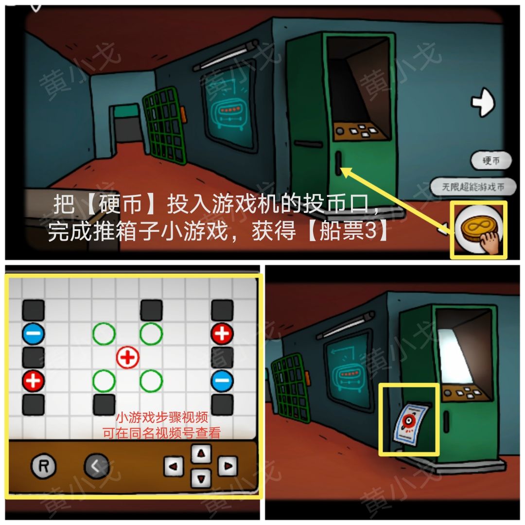 32.把【硬币】投入游戏机的投币口,完成推箱子小游戏,获得【船票3】