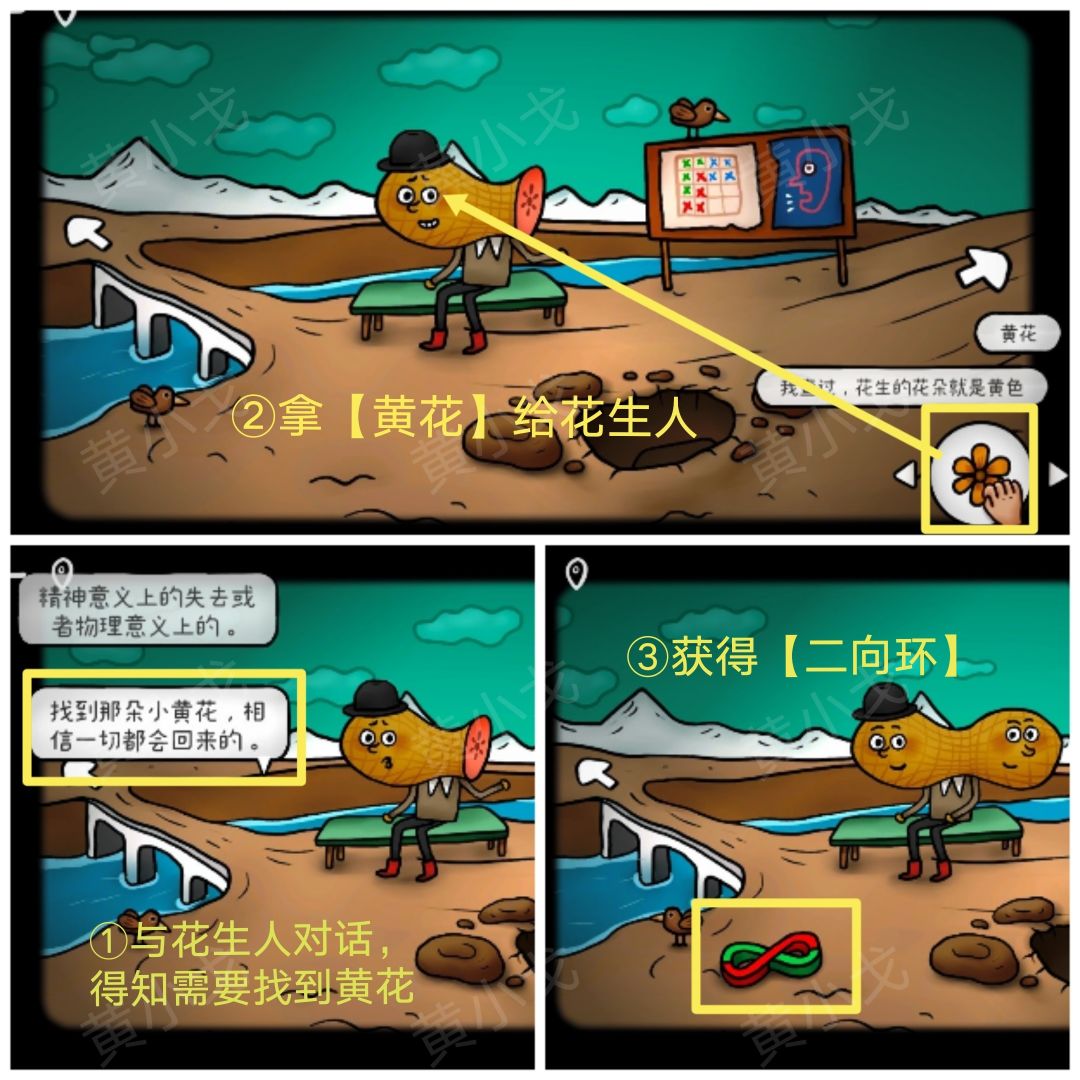 19.与花生人对话,得知需要找到黄花;拿【黄花】给花生人,获得【二向环】
