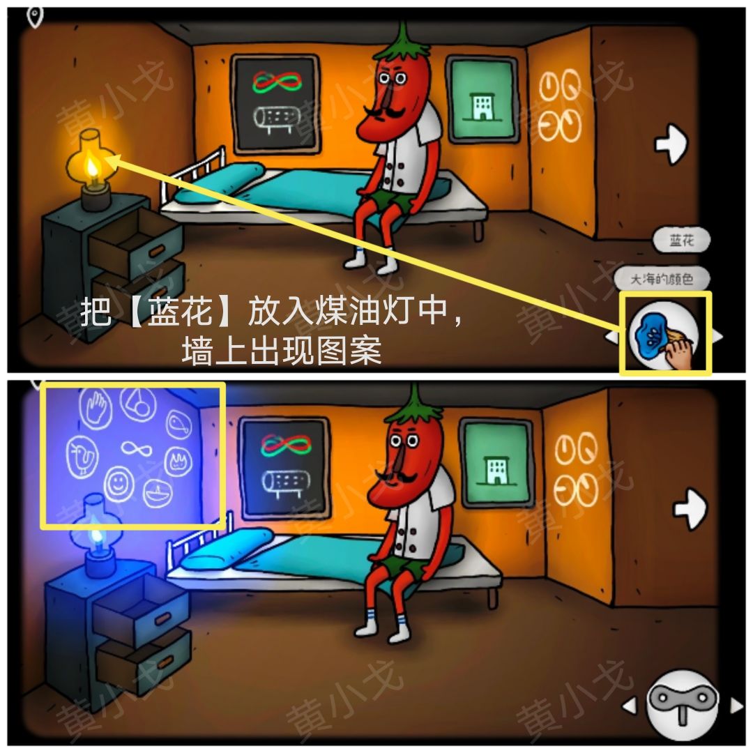 17.把【蓝花】放入煤油灯中,墙上出现图案,后面会用到