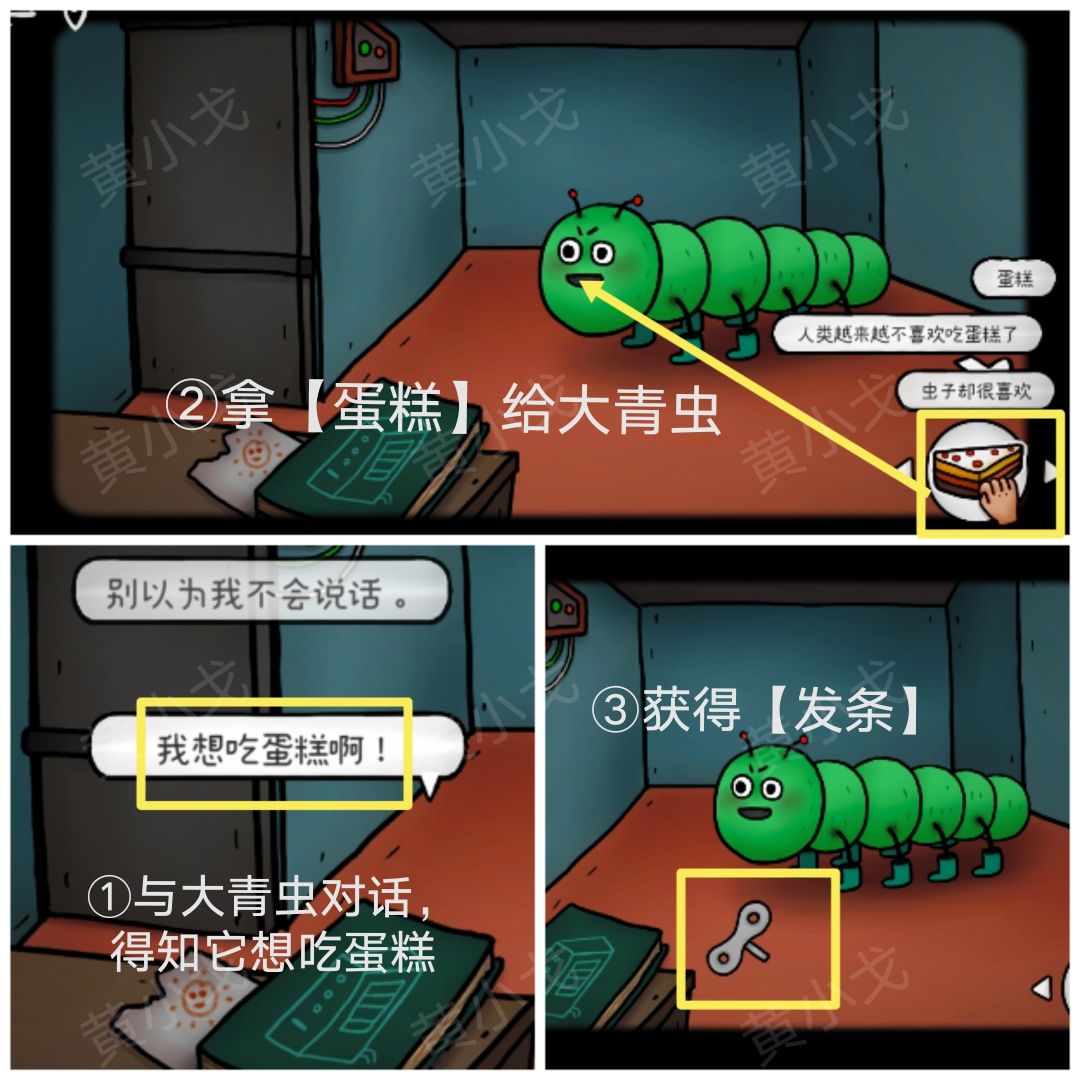 6.与大青虫对话,得知它想吃蛋糕;拿【蛋糕】给大青虫,获得【发条】