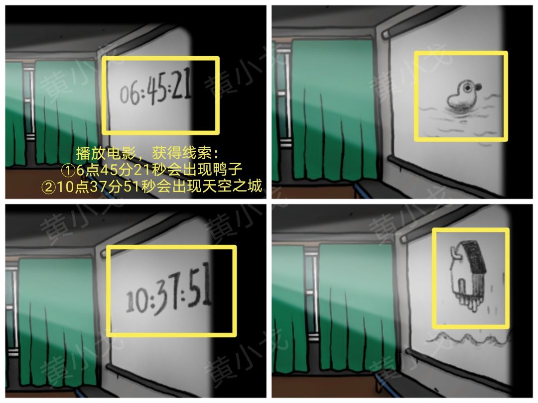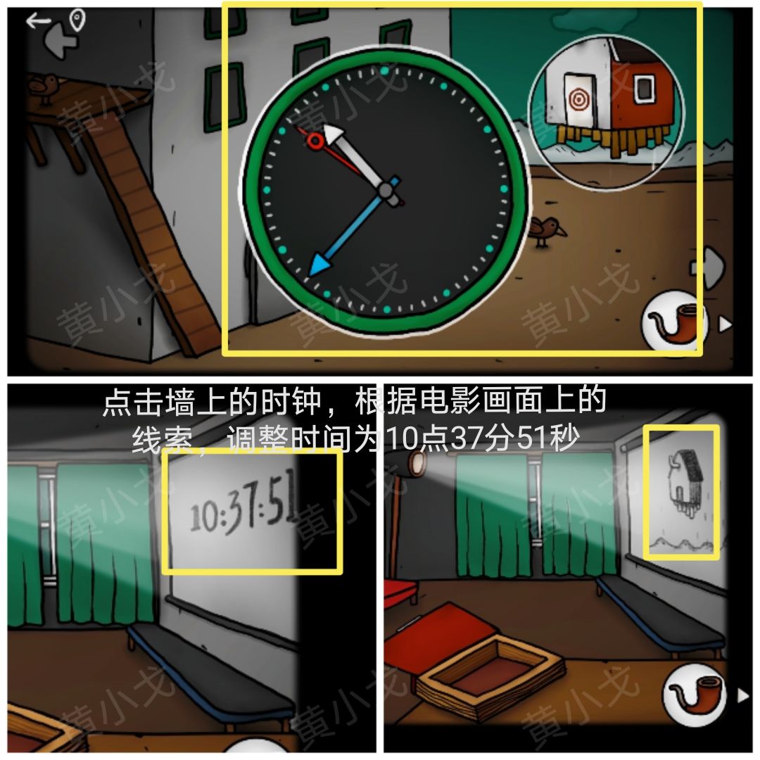 21.点击墙上的时钟,根据电影画面上的线索,调整时间为10点37分51秒