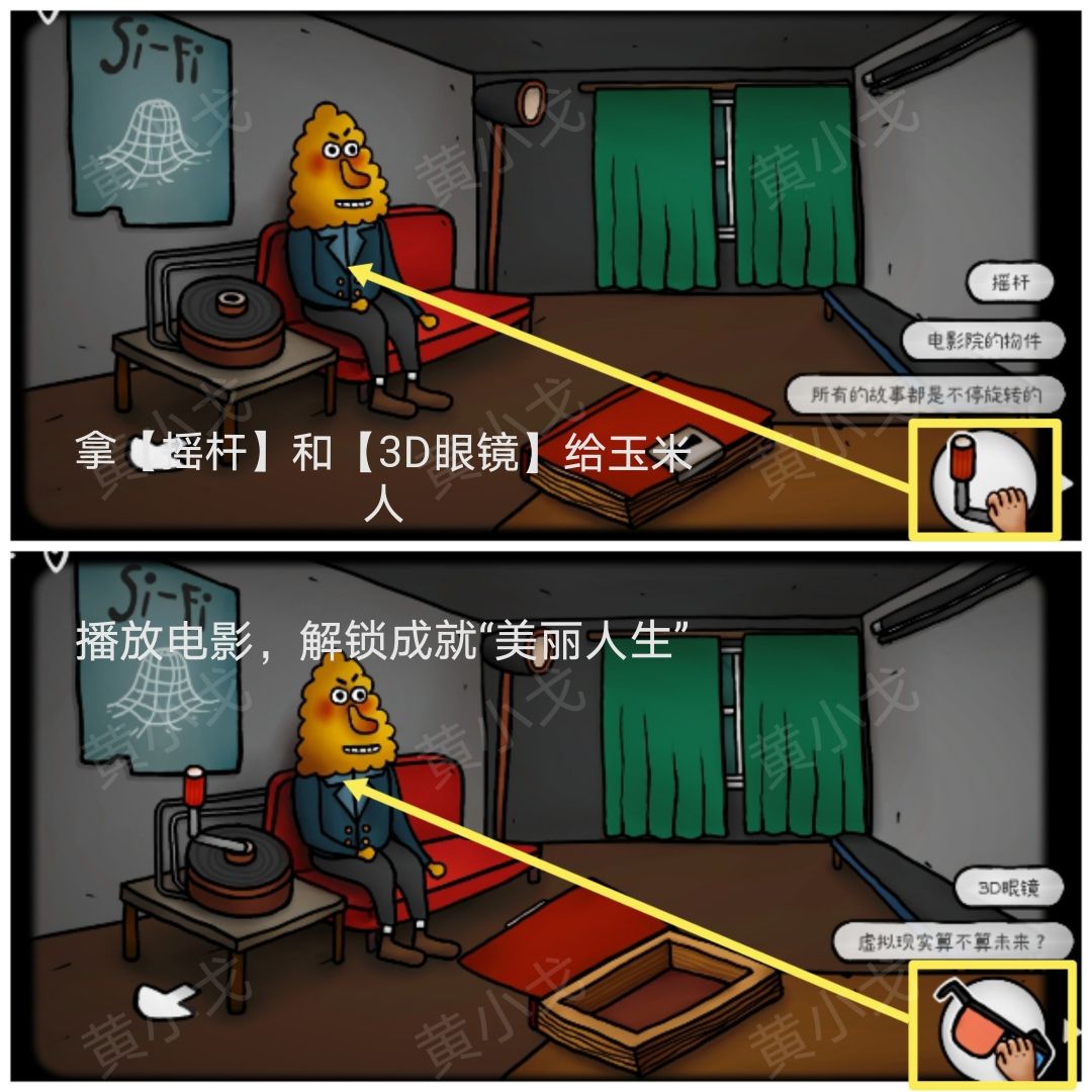 15.拿【摇杆】和【3D眼镜】给玉米人,播放电影