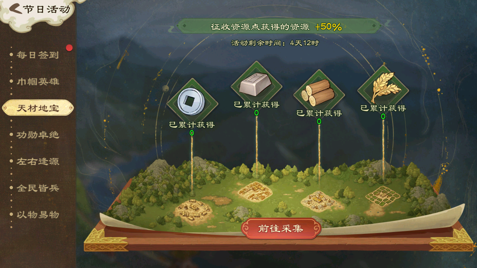 活动期间,征收资源点可获得额外资源
