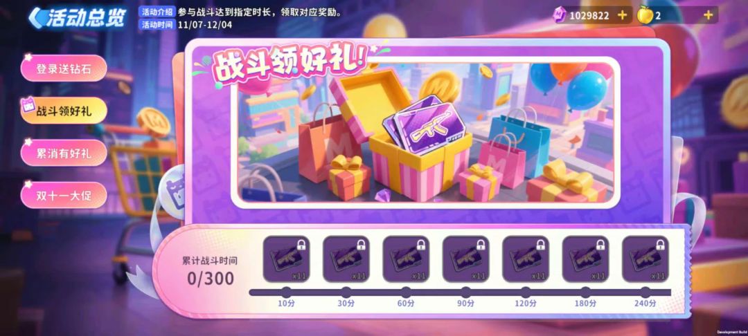 [活动内容]:11月7日-12月4日,任意模式累计战斗时长,可领取枪械升级卡奖励。