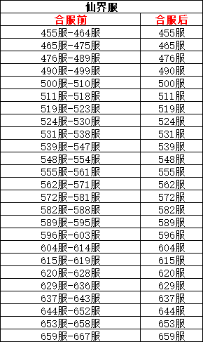 停服范围:仙界455服-仙界659服