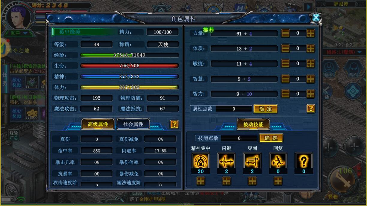 属性加点直接影响战力提升。魔法师应全力投入智慧属性,54级全智慧加点的魔法攻击比乱加点玩家高出20%。格斗师建议按照7:3的比例分配力量与体质,平衡输出与生存。枪械师主加敏捷,确保攻速与命中率,避免出现攻击落空的情况。