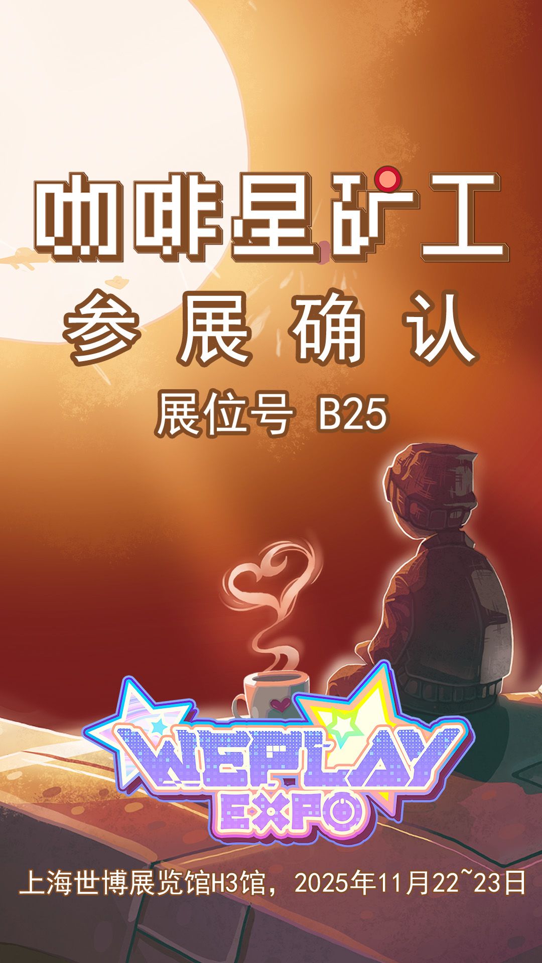 各位朋友们好呀,报告一个好消息!我们将带着《咖啡星矿工》出征本次上海WePlay游戏展,在B25展位与大家见面!