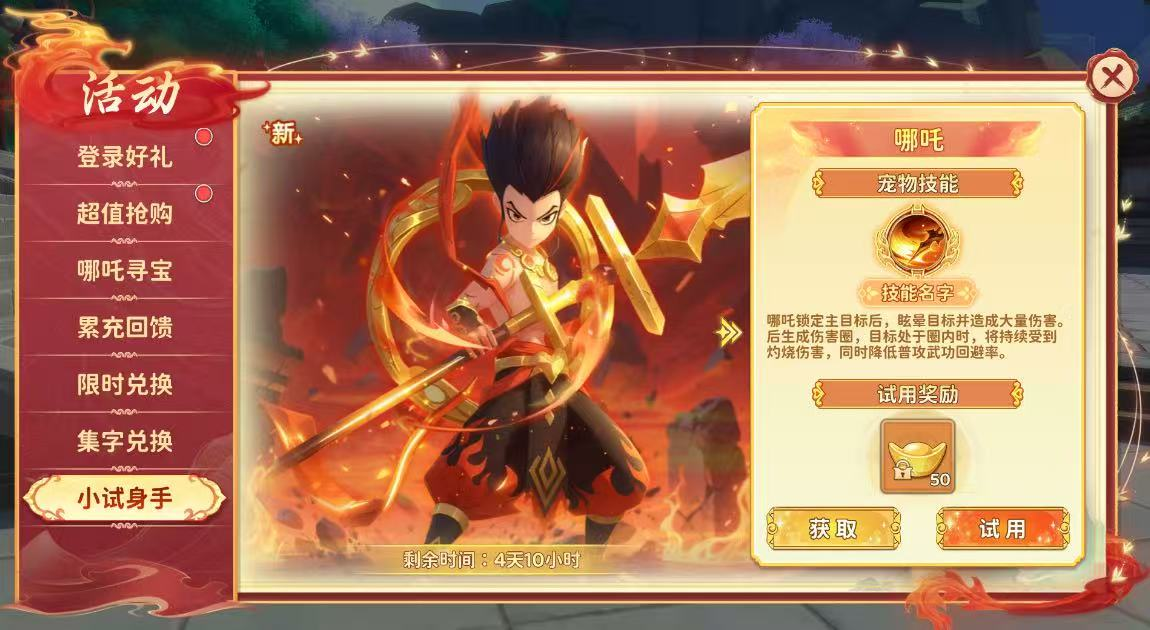 活动期间可免费试用神宠技能与特效,体验专属战斗加成,