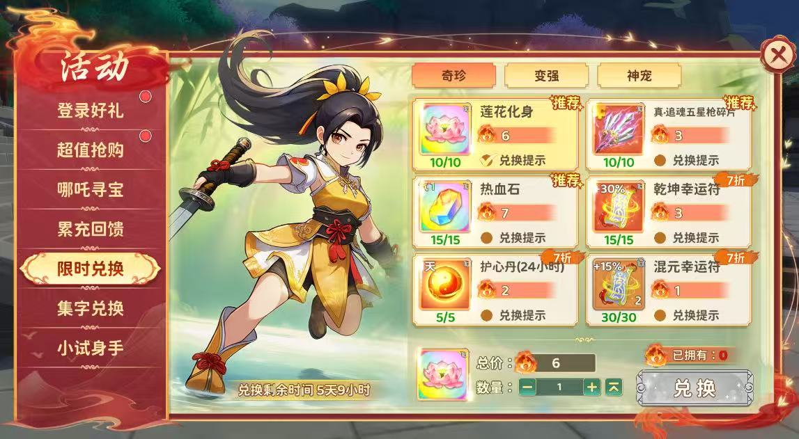 可用活动代币兑换真·奇宝碎片、热血石、莲花化身等超稀有道具。