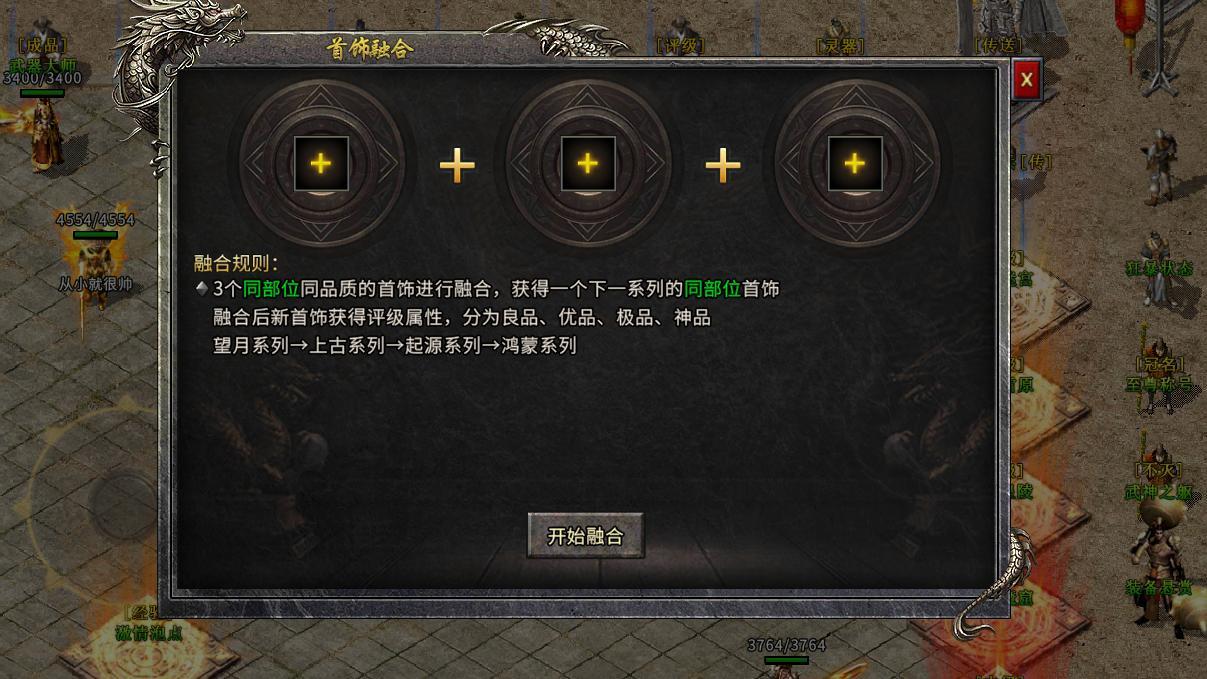 “首饰 3 合 1、武器 10 合 1”规则,分解装备获千年 / 万年材料精准用于高阶合成,萌新轻松上手。新增斗笠、盾牌等特殊属性装备,品级提升带来战力飞跃,解决养成迷雾。