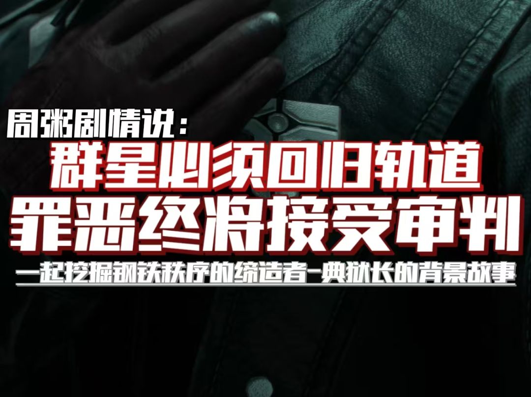 “阿萨拉不能失去潮汐监狱,新世界不能没有钢铁秩序。”大家好我是你们的兔桑,欢迎大家观看本期的周粥剧情说。我们继续上一期的话题:代表秩序的典狱长与代表着混乱渡鸦两个首领在潮汐监狱上演着一出“年度大戏”;在之前的剧情说中我们已经了解到了渡鸦曾经的遭遇和磨难,今天兔桑带各位彦亦菲一起来看看典狱长格赫罗斯究竟是什么样的一个人物,在他身上又有着什么样的故事。