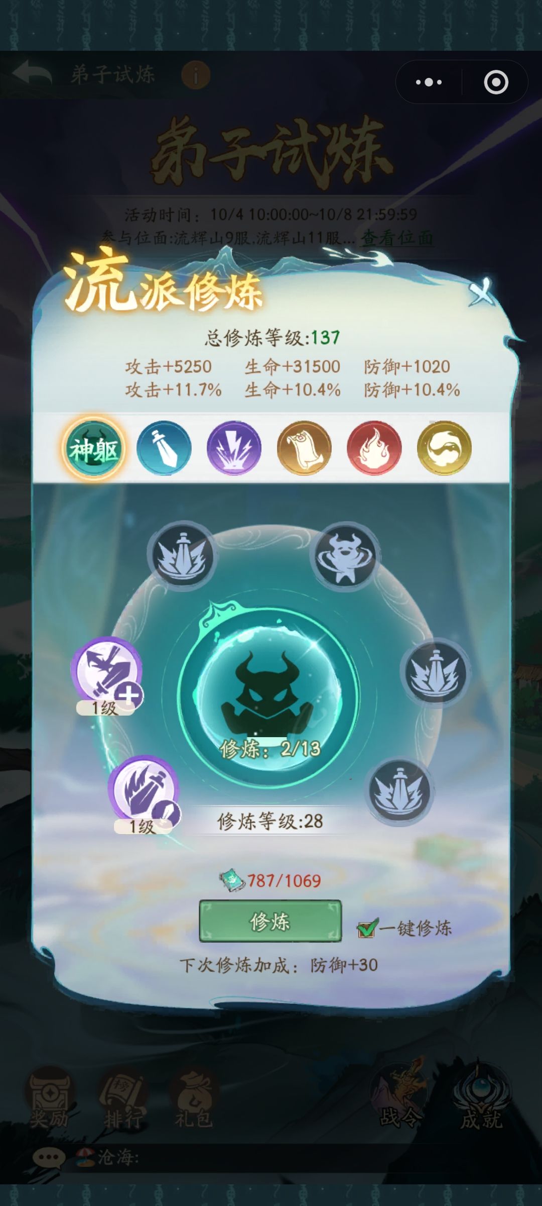 弟子试炼是一款闯关打怪从而拿到奖励的小游戏。