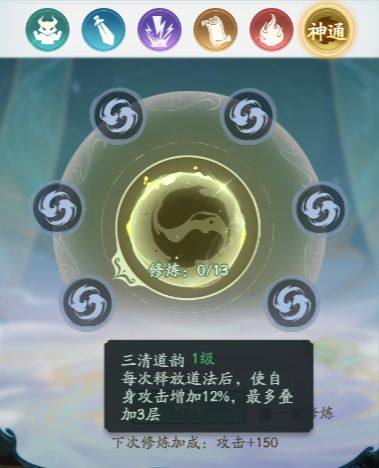 6.三道清韵:每次释放道法后加攻击可叠加;