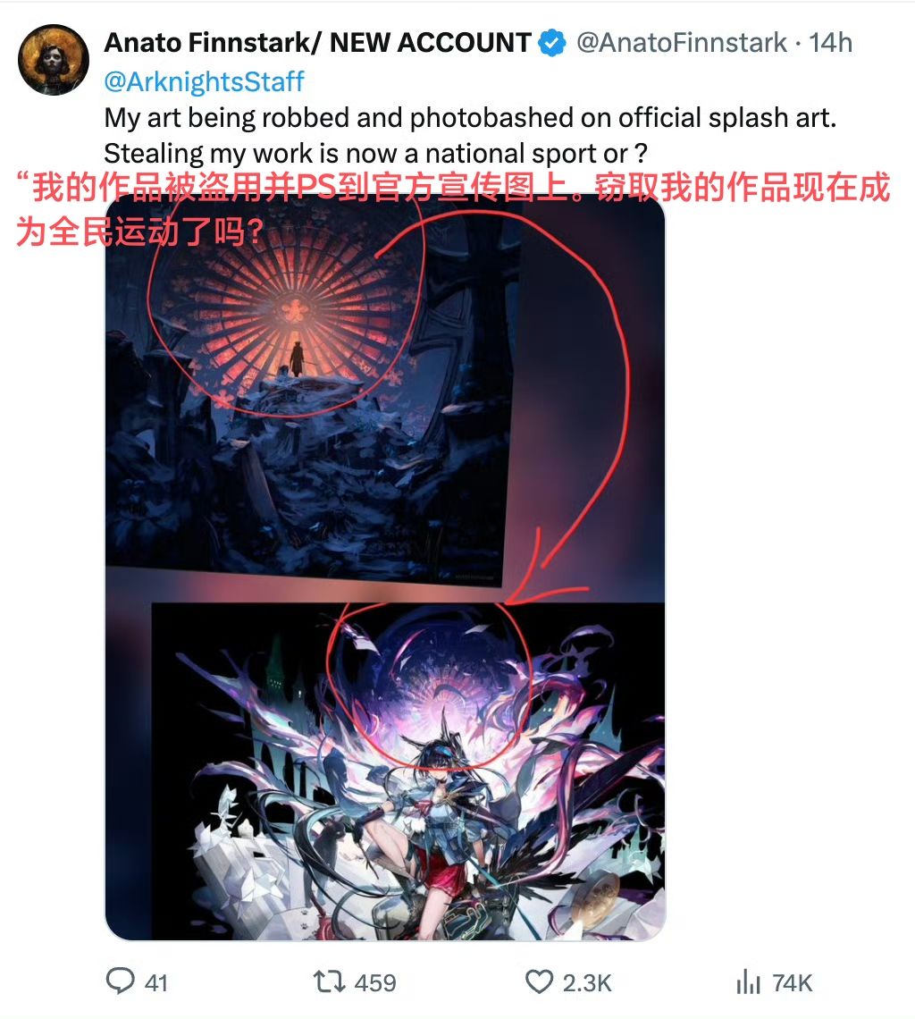 11月5号,国外艺术家(Anato Finnstark)在社交平台发文质问《明日方舟》盗用了其作品❗❗❗