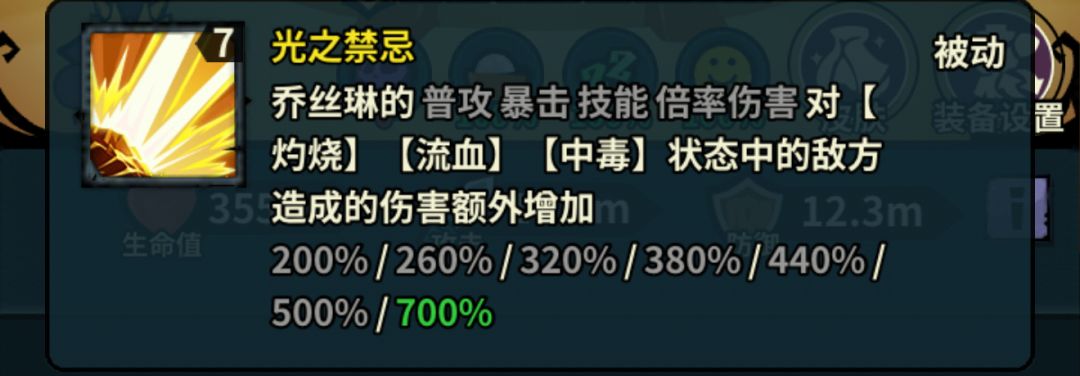 - 乔丝琳 (光系):对【灼烧】、【流血】、【中毒】状态敌方均可增伤