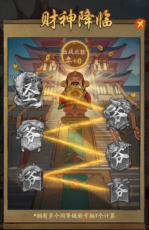 活动开始后,掌柜可以使用已拥有且未过期的财神称号兑换财神之力,使用财神之力可以委任门客出战。