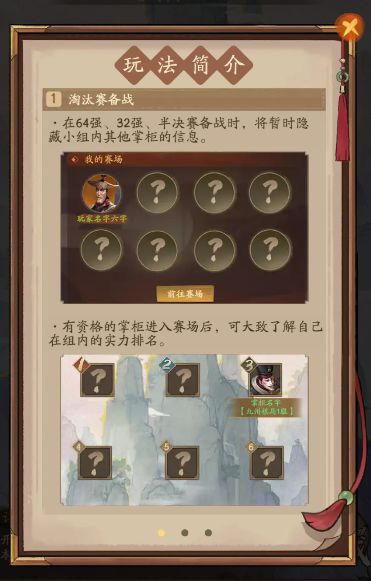 入围赛阶段分为多轮,每轮将会进行多场比赛,战胜对手即可获得积分,入围赛结束时,根据积分排名情况,满足晋级条件的掌柜可以晋级淘汰赛。