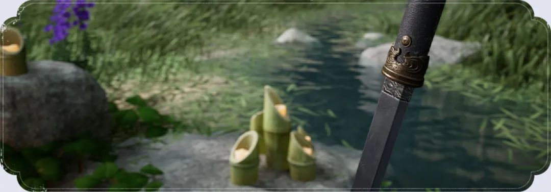 化故人思念为力量,万千江湖意气凝于一竹。此剑以竹隐居新竹所制,进可强身健体,退可下河捞鱼。