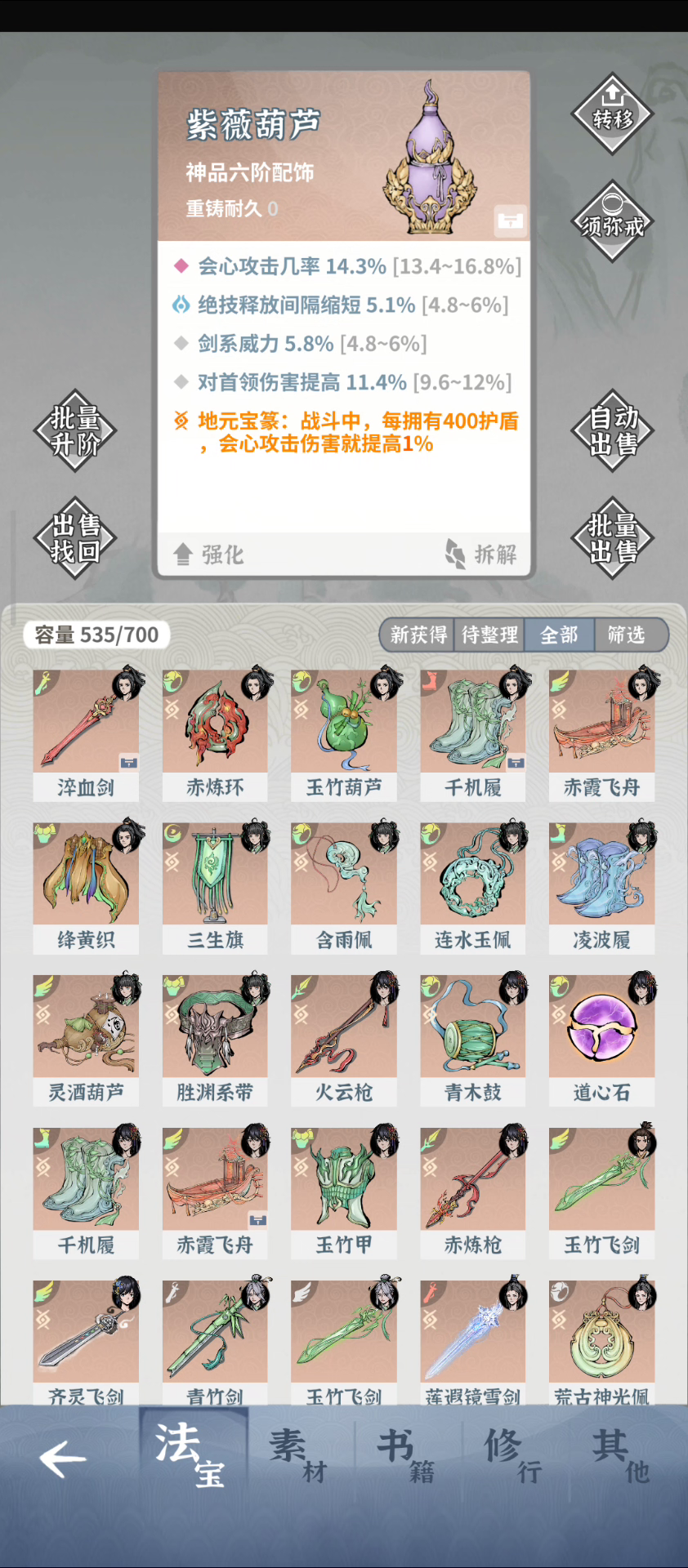筛选挑好底子装备后就可以洗练了,多余的垃圾装备可以全部出售