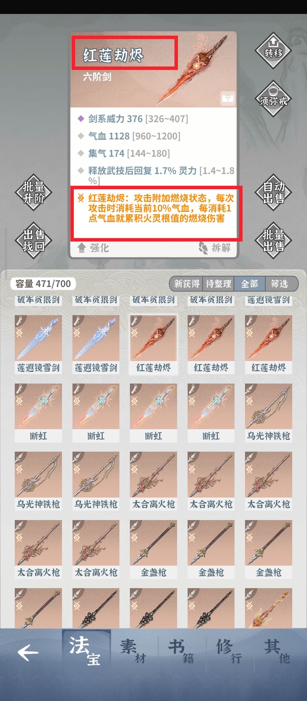 筛选挑好底子装备后就可以洗练了,多余的垃圾装备可以全部出售