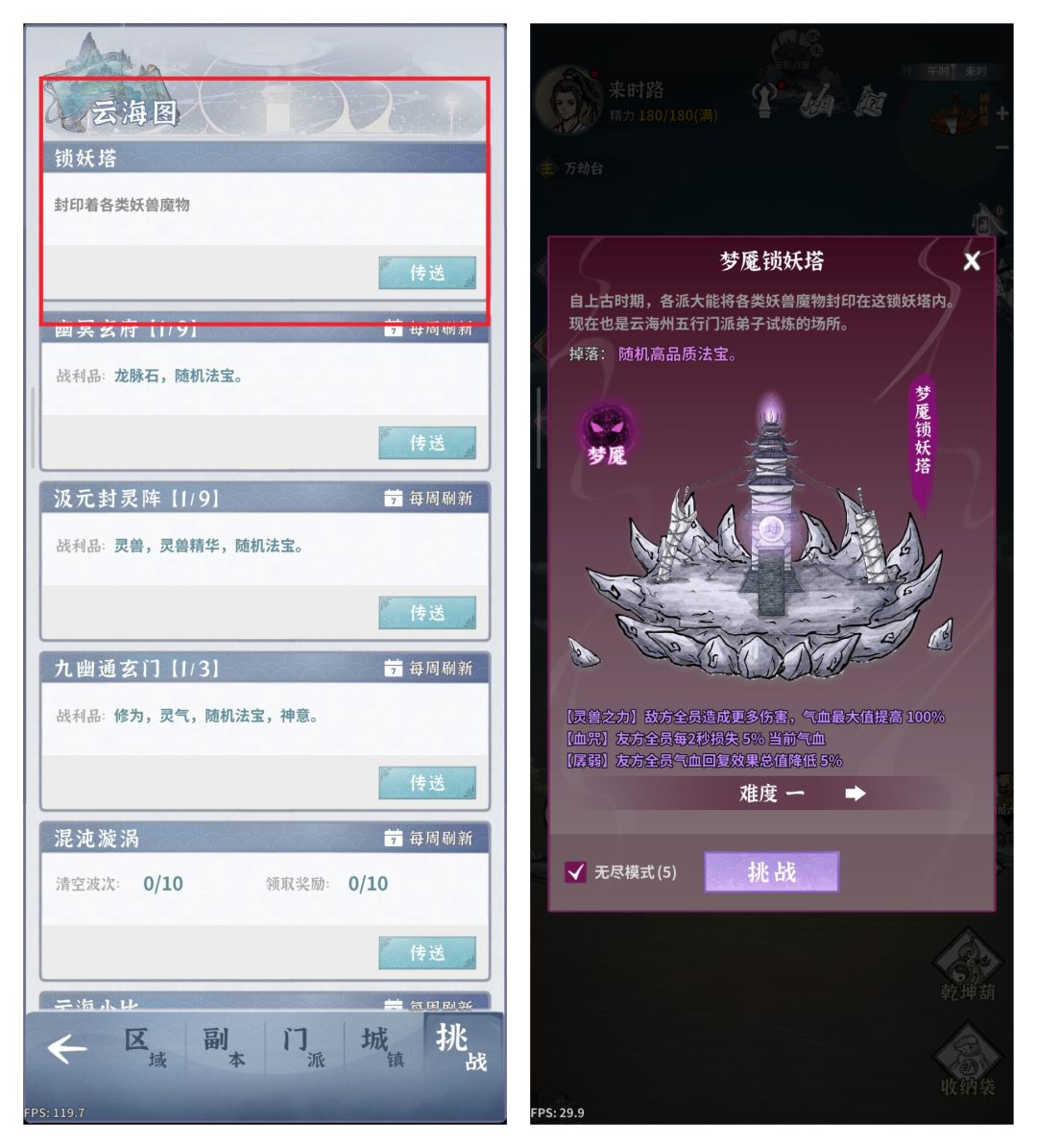 装备主要来源是锁妖塔,在解锁"梦魇"难度之前(通关普通30层后解锁梦魇)不太需要考虑装备的问题,日常掉落有啥用啥就行