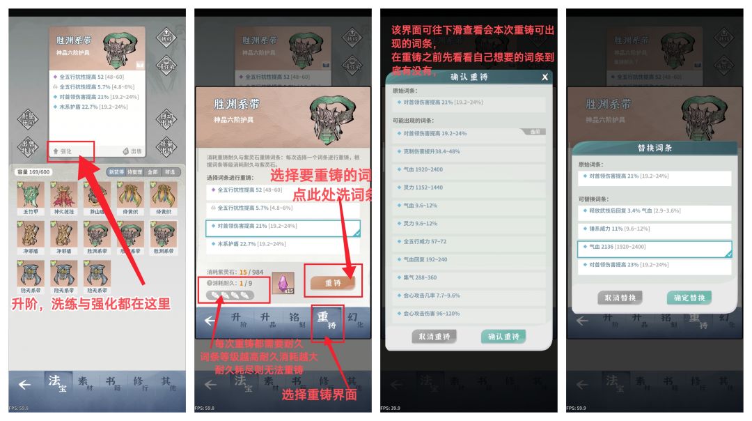 一般我们不洗高级词条,因为词条越高级消耗的紫灵石也越多,只要天生自带正确的高级词条的装备是最省资源的办法,