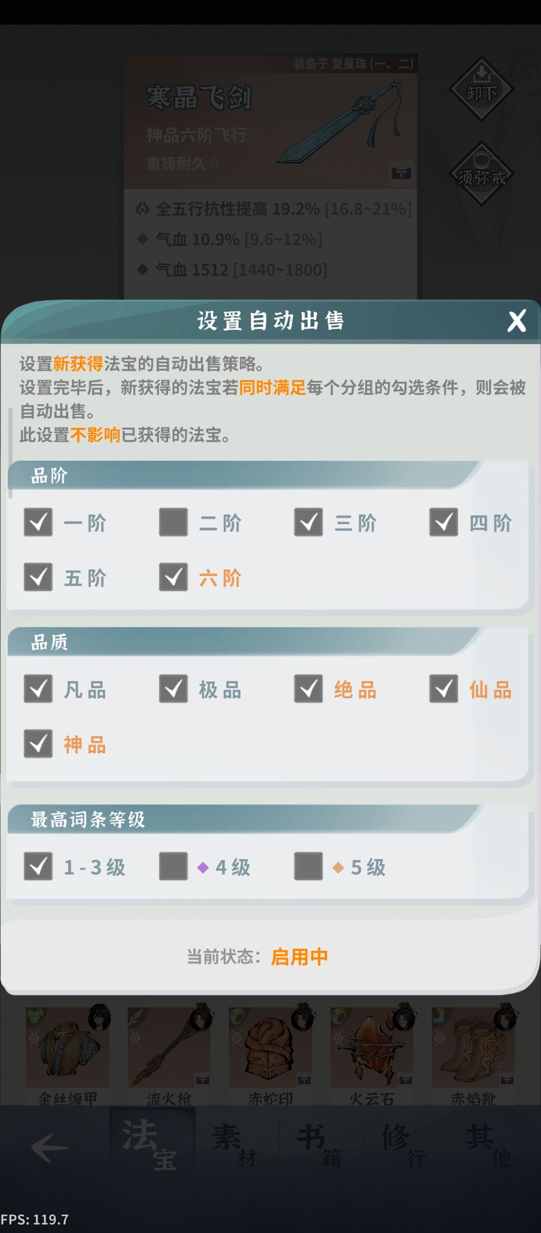 二阶不勾选自动出售是因为日常会掉落一些二阶飞行器(飞行器最低只有二阶)