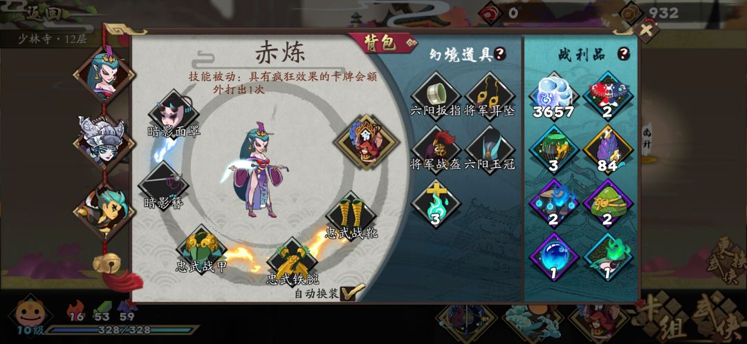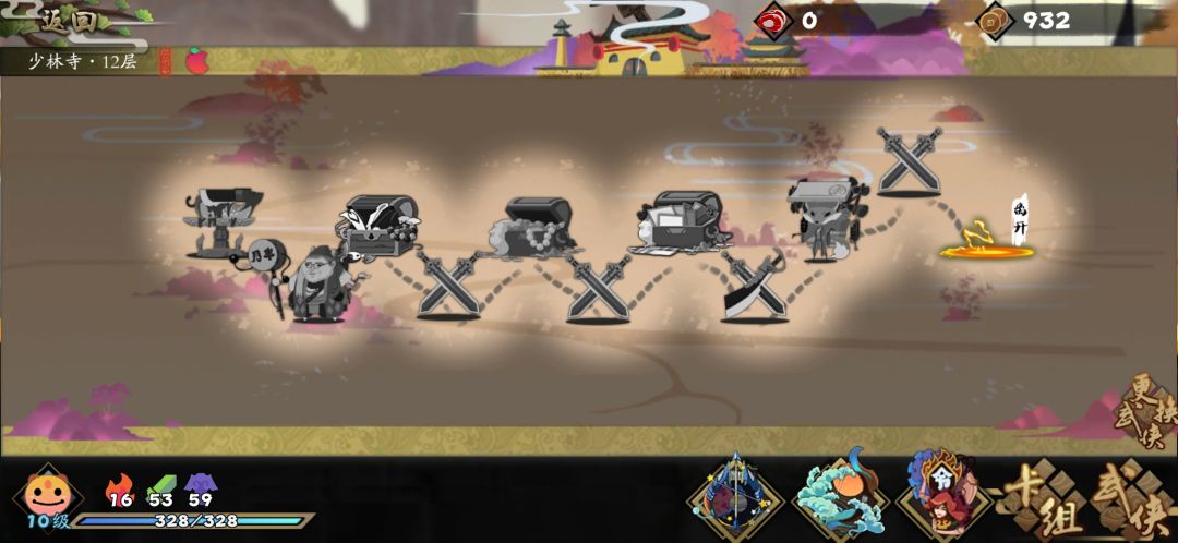 不过我是先拿星弧+弓令的赤练面板流打到29层再开这个档的,不过讲道理打到29层有赤练也很艰难,我刷了十次左右。下次试试星弧/弓换扇子彻底贯彻苟的思路,可能这样东海一家和九剑+不可不戒守关底(我现在有可能会被他们秒)就不怕了