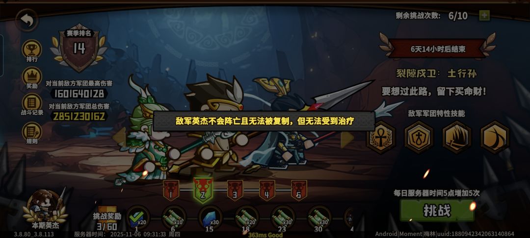 排名取最高不会刷新,也可以留到最后一天,实力强了再打,在这之前就各上1人刷次数。