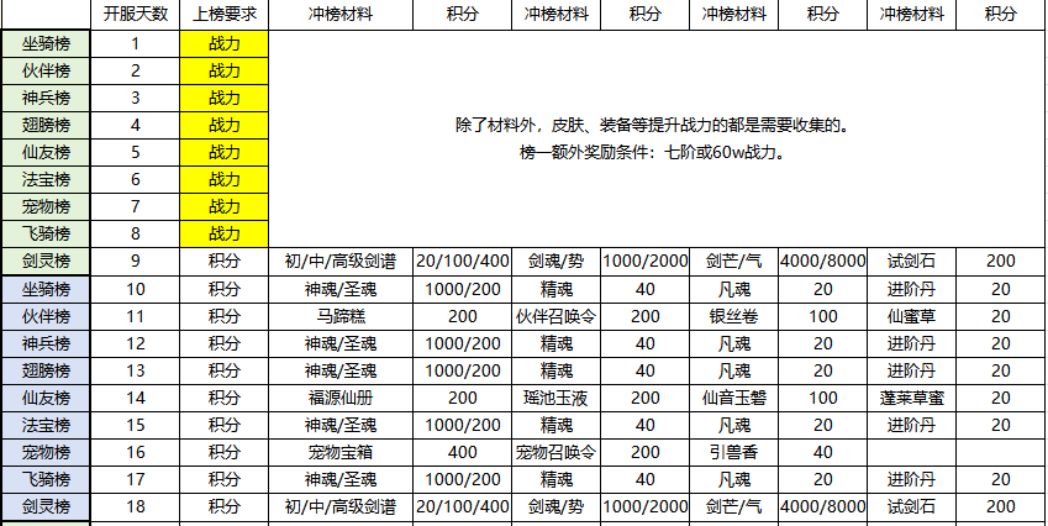 开服第1天~第8天为战力榜