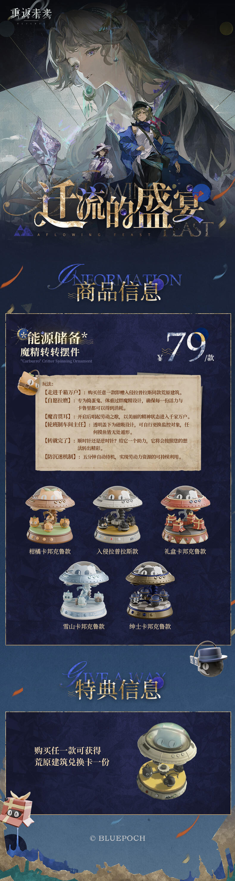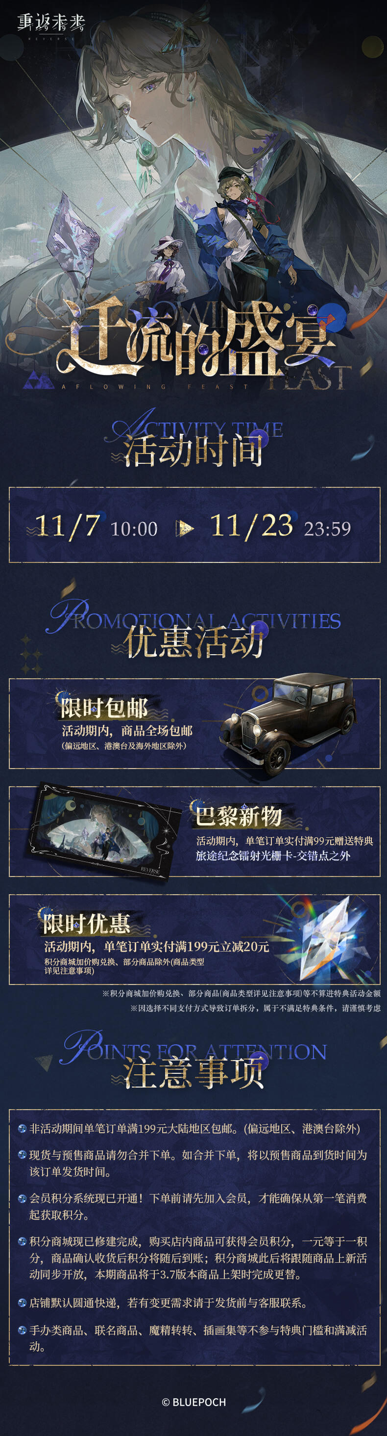 🎩:各位朋友,第二十三期“迁流的盛宴”系列任意商品将于11月7日10:00正式开启预售!更多商品信息、活动详情,请点击大图观看!