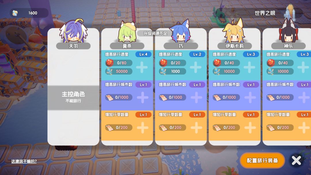 其中可以消耗感受质体以及光能提高旅行速度,更高的旅行速度可以让猫娘去到更远更好的地方