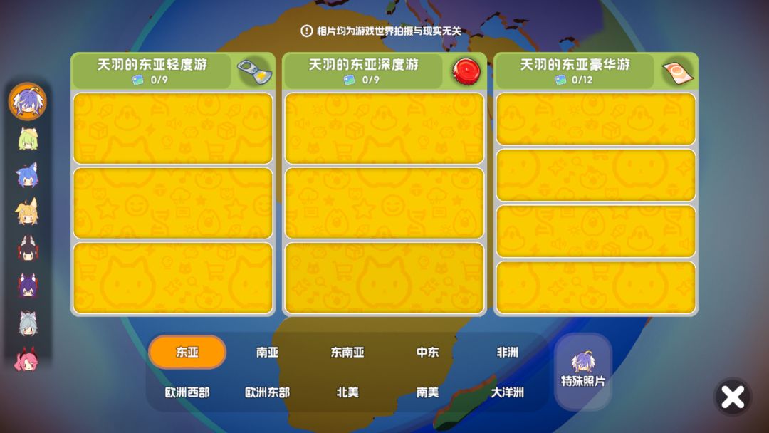 这个是旅行社,消耗维生素,肾上腺素,多巴胺可以解锁更多伴手礼搜集奖励(据说不用解锁也能去到后面的城市,获得后面城市的收藏品和照片,小编不确定),可以在此获得行李凭证,以及抽卡道具(截至11月6日前,不建议新手将维生素投入到这里)