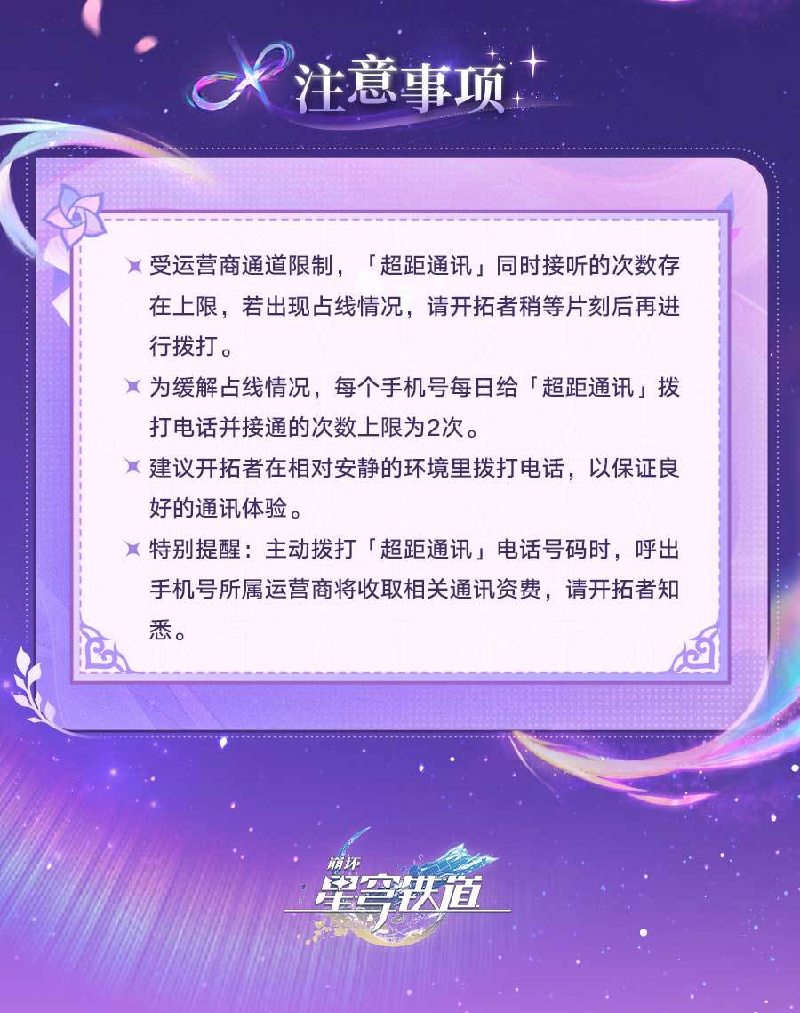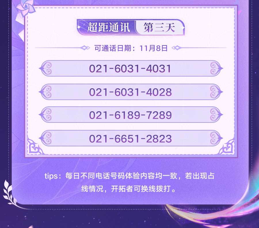 ※为保障更多开拓者的通话体验,每日每个手机号拨打电话并接通的次数上限为2次。