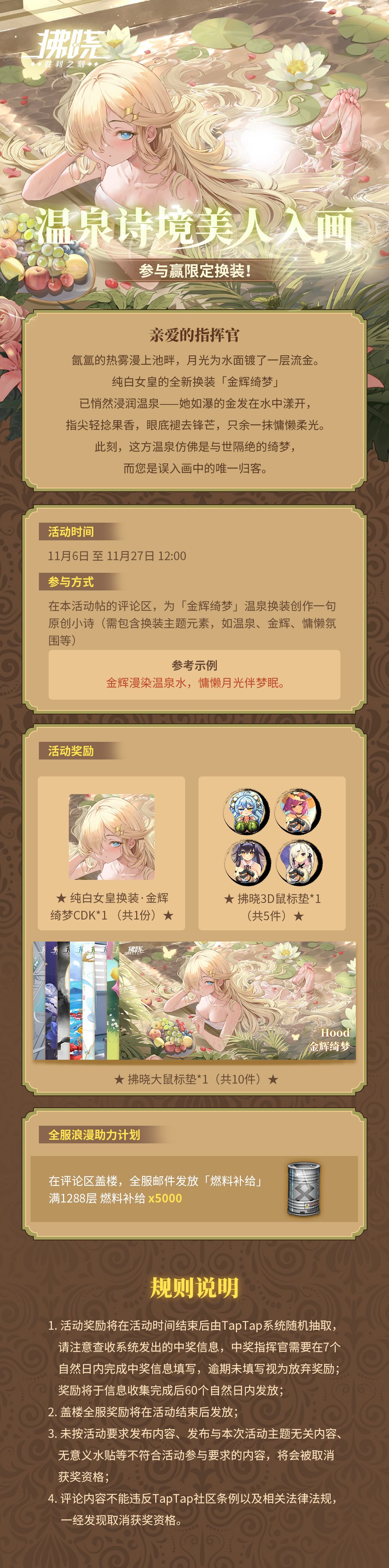 拂晓丨温泉诗境,美人入画!参与赢限定换装!