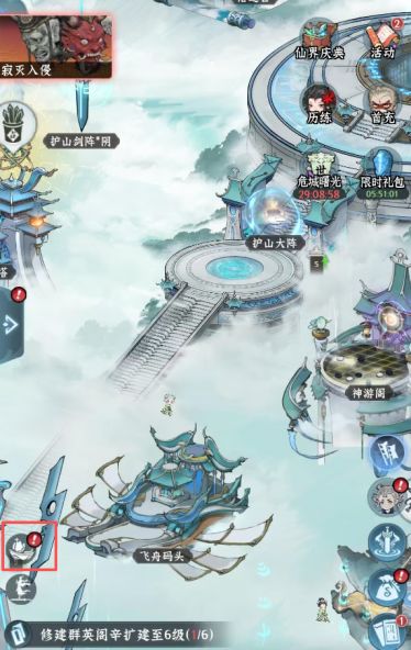 在【三千道藏碑】达到一定等级时,玩家便可以修筑【飞舟码头】从而解锁飞舟玩法。在宗门页面就能看到飞舟码头,同时右下角的飞舟形状小图标也可以一键进入。