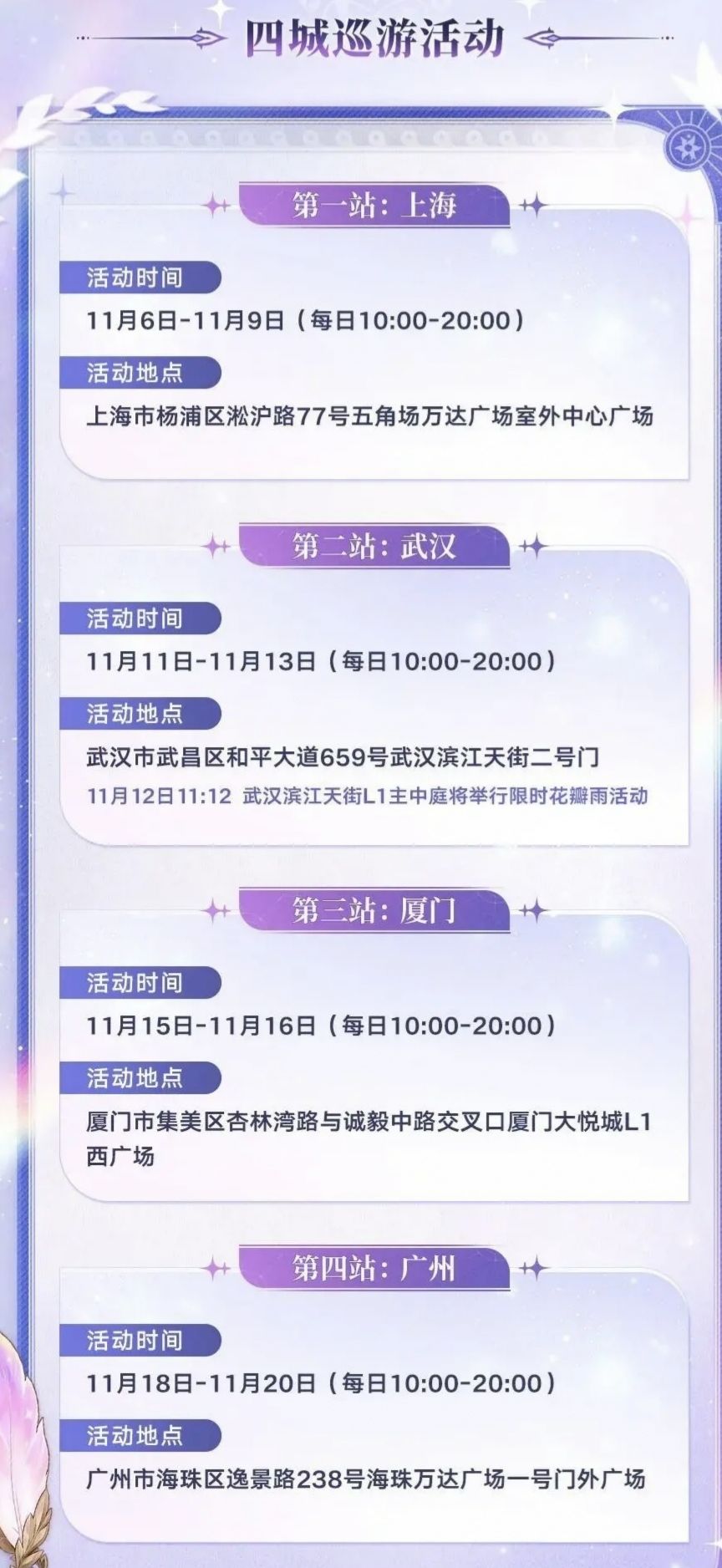 《崩坏:星穹铁道》推出的「如我们所书」线下巡游,将于11月6日至20日展开。活动覆盖上海、武汉、厦门及广州四座城市,巡游车按无限符号轨迹运行。玩家可亲临现场,通过互动环节记录翁法罗斯的相关记忆,增强游戏叙事的沉浸感。