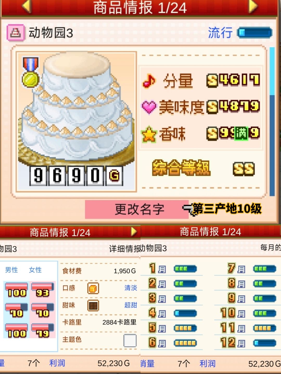 第三关用同样的配方通关,不久后二十妹的经营计划就来了。参加比赛的蛋糕人气挺高的,顺便开经营计划。
