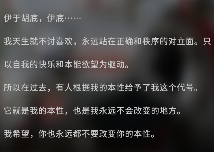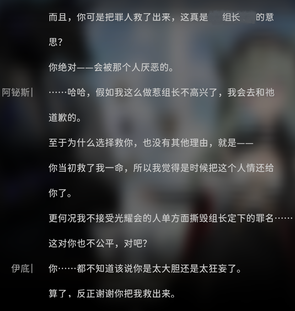 “组长的线人”这一身份,令伊底暂时找到了自己存在的意义,能帮到组长的话,拥有“光耀会成员”这个身份好像还不错。